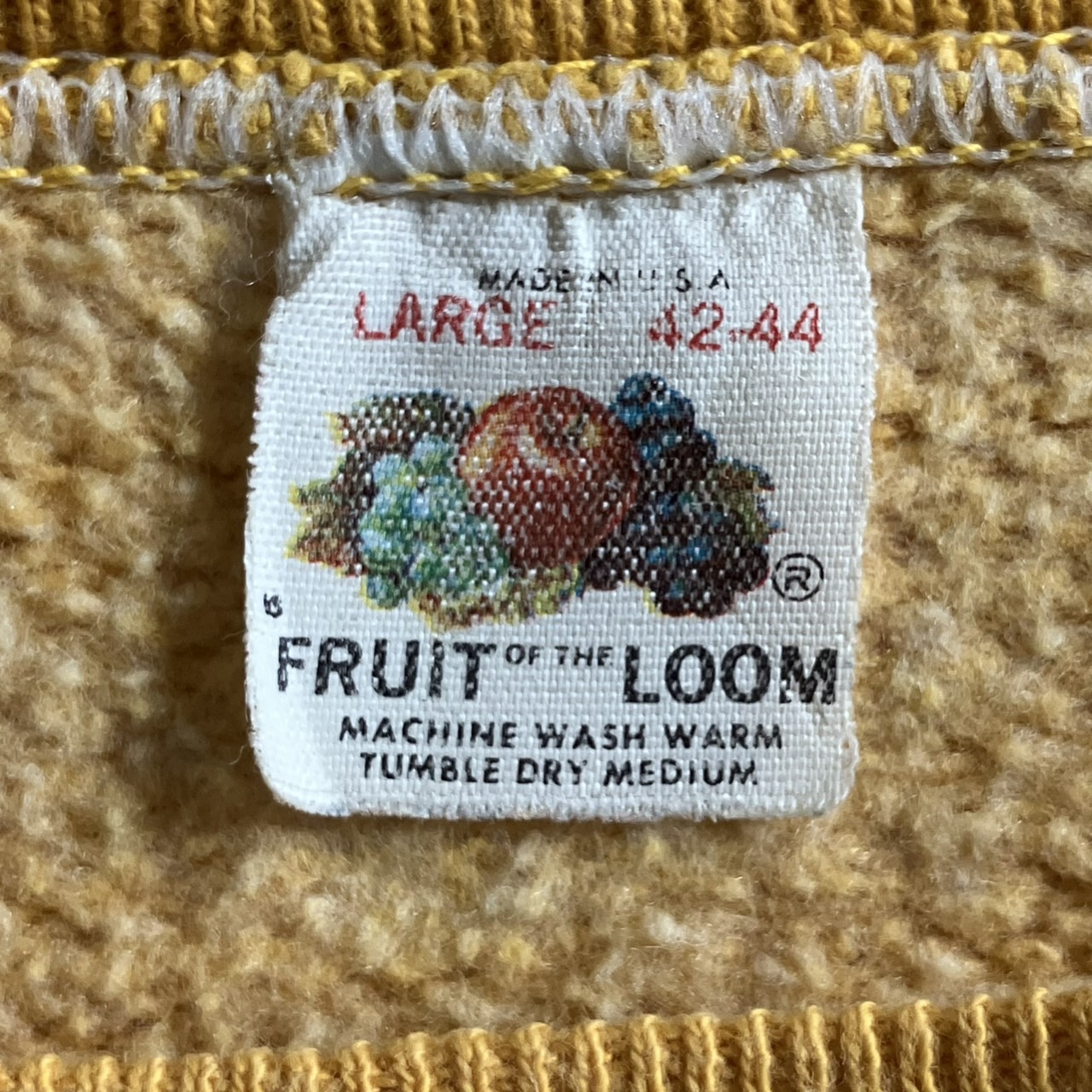 ビンテージTシャツの”ボディ”として圧倒的な人気を誇るフルーツ・オブ・ザ・ルーム(Fruit of the Loom)。主に1980年代のTシャツに多く見られる紙タグから1990年代前半までに作られたヴィンテージTシャツの多くがアメリカで製造されていた時代まで、タグの変遷を追うことで正確な年代が判別できます。
