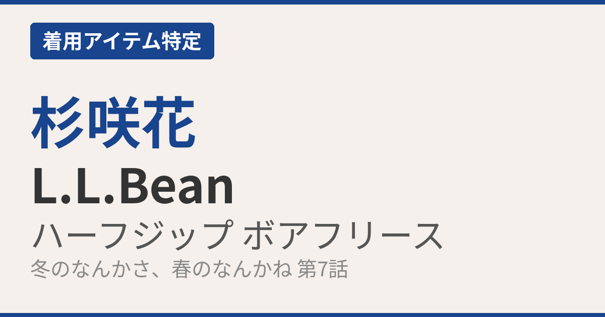 ドラマ「冬のなんかさ、春のなんかね」で杉咲花さん演じる土田文菜の衣装、毎話話題になっていますが、第7話で着ていた深いワインレッドのフリースが気になった方も多いんじゃないでしょうか。今回はあのフリース、しっかり特定できたのでシェアしていきますね。結論から言うと、L.L.Beanの80年代後半から90年代中頃ヴィンテージ ハーフジップ ボアフリース プルオーバーです。